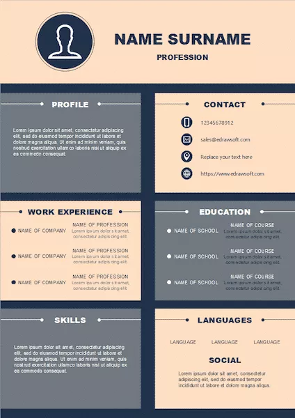 Chaque zone de ce CV est consacrée à une rubrique précise, comme informations personnelles, formation, expérience, compétences… N’hésitez pas à employer des couleurs de blocs différentes pour assurer la lisibilité, mais n’employez au contraire pas trop de blocs... pour ne pas donner un mal de bloc au recruteur!